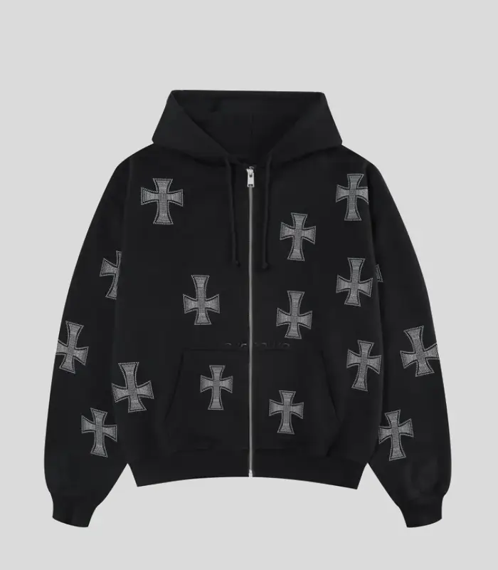 UNKNOWN Crystal Cross Cotton Zip-up Hoodie ShopStyle
