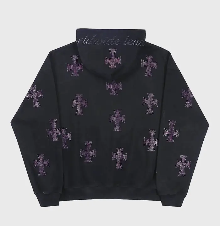 • New Project (40) BLACK×PURPLE RHINESTONE CROSS ZIP HOODIE -BLACK- WALKIN STORE $172.00 Original price was: $172.00.$120.00Current price is: $120.00.